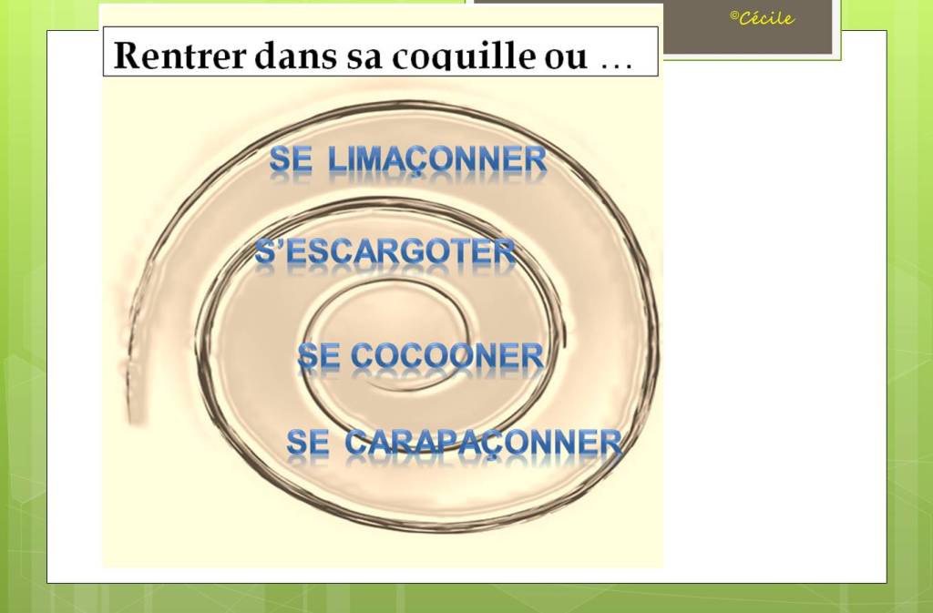 S’escargoter est un vieux mot français qui veut dire « se retrancher sur soi-même pour se protéger d’agressions extérieures ».